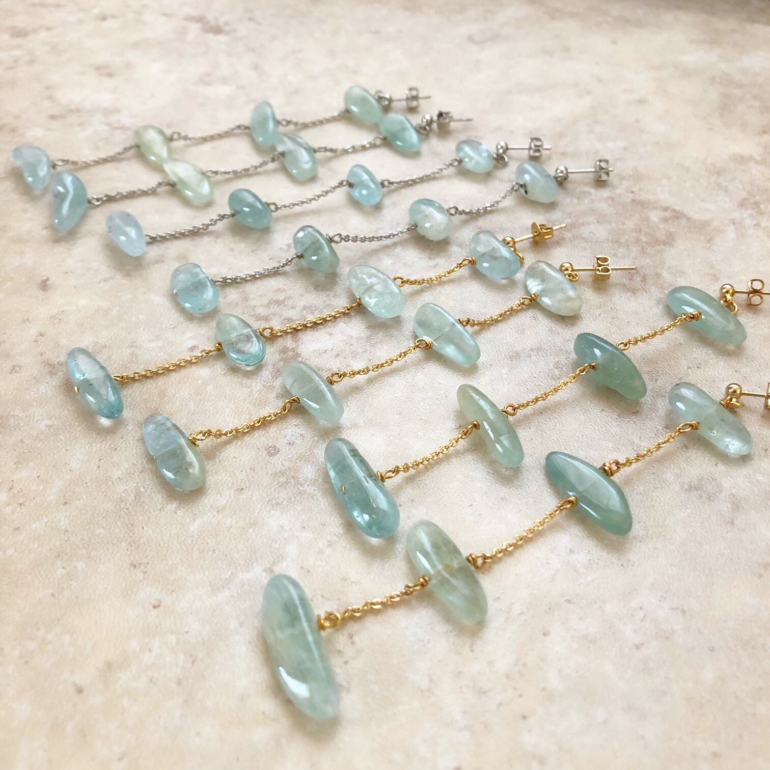 繊細なチェーンと天然石が揺れるロングピアス&イヤリング。