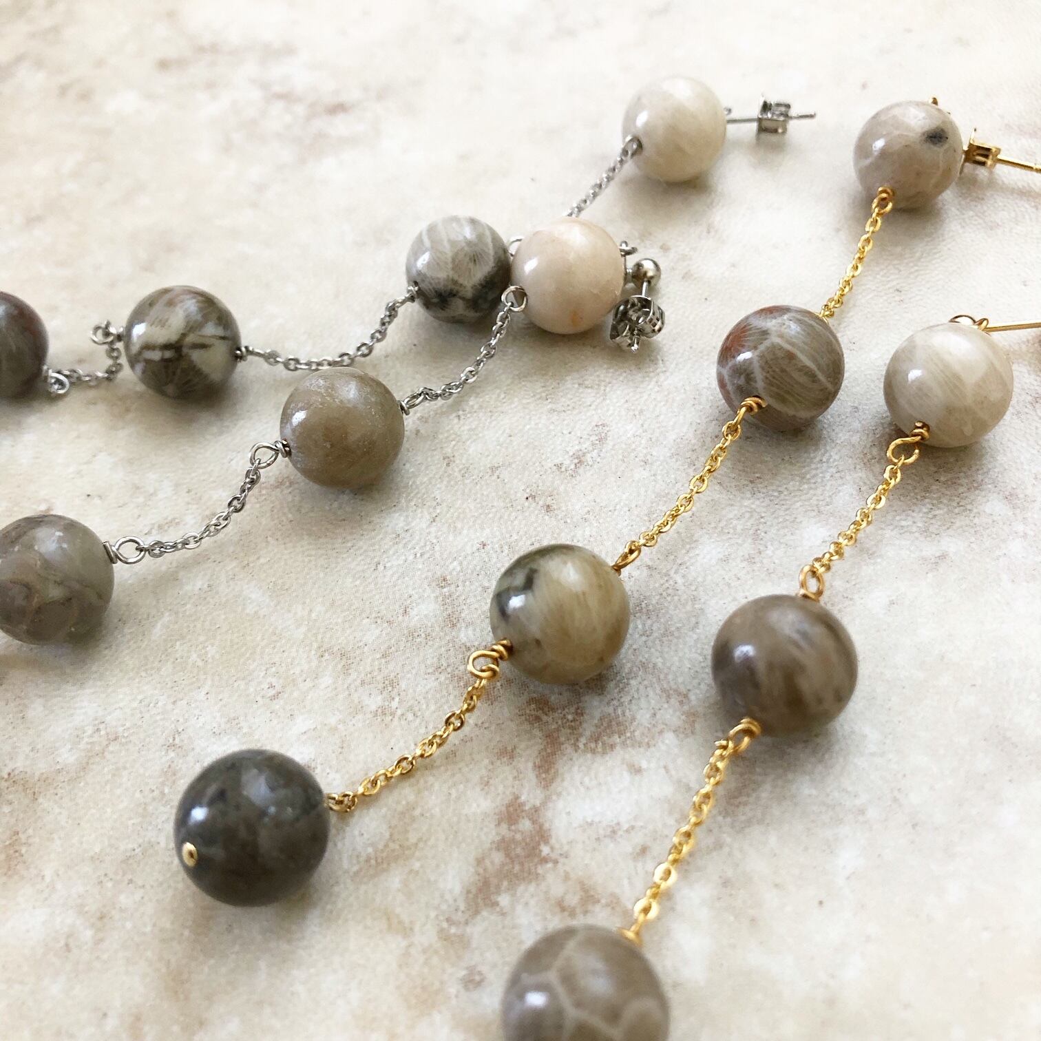 グレージュカラーの約10ミリのフォッシルコーラルは
