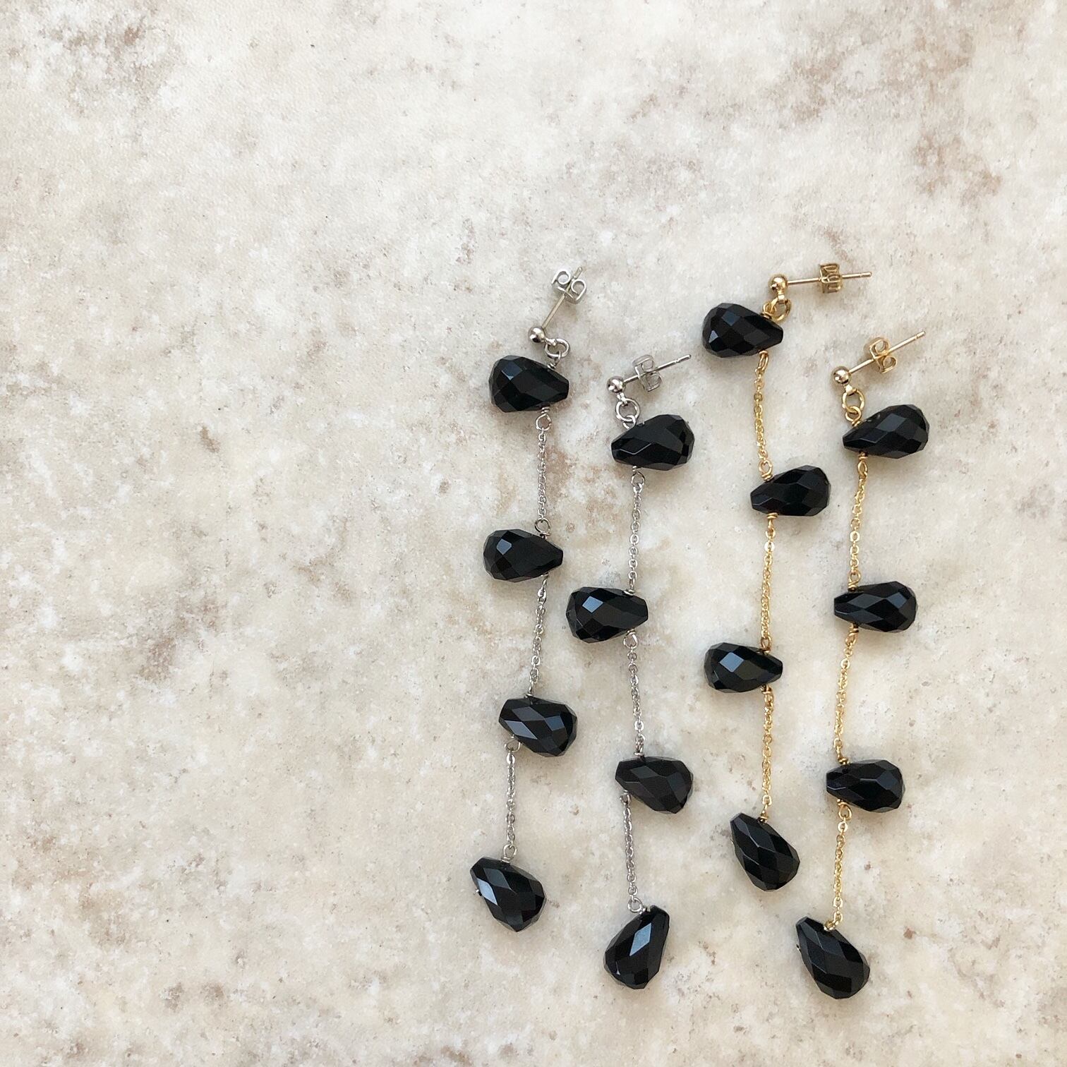 【SALE】No19011 ロングswingピアス&イヤリング_オニキス