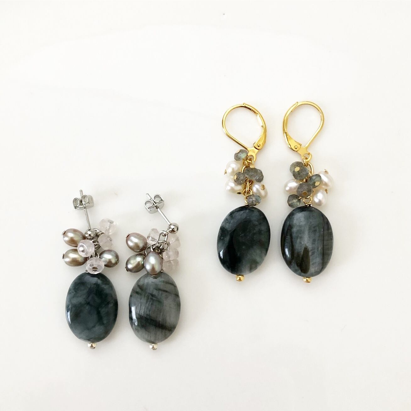 (A)ホークスアイ/淡水パール・ラブラドライト