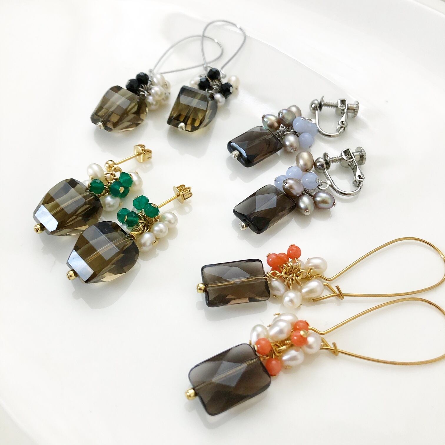 (C)スモーキークォーツ/淡水パール・アゲート