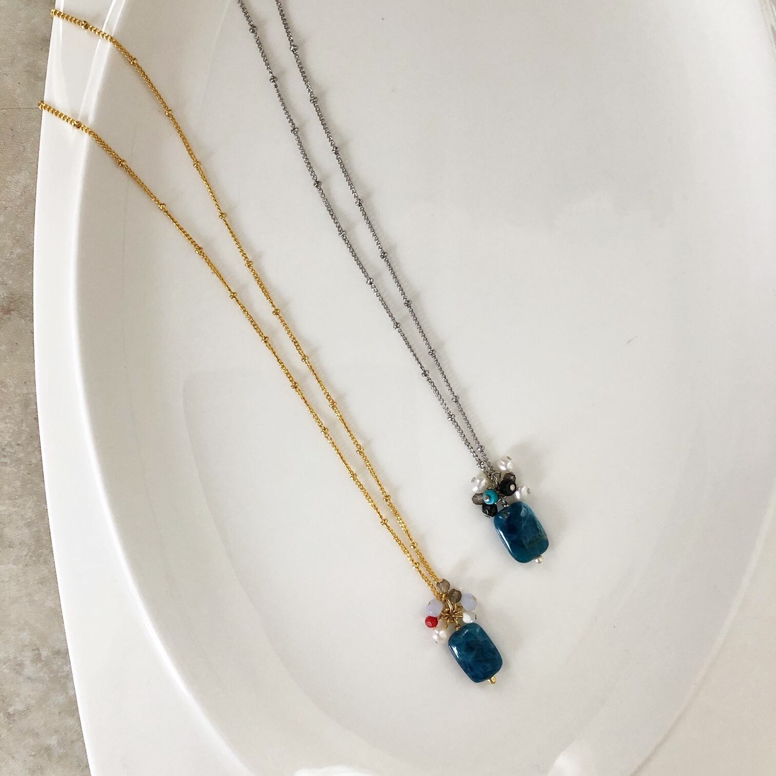 メインストーンは鮮やかなネイビーブルーのアパタイト。