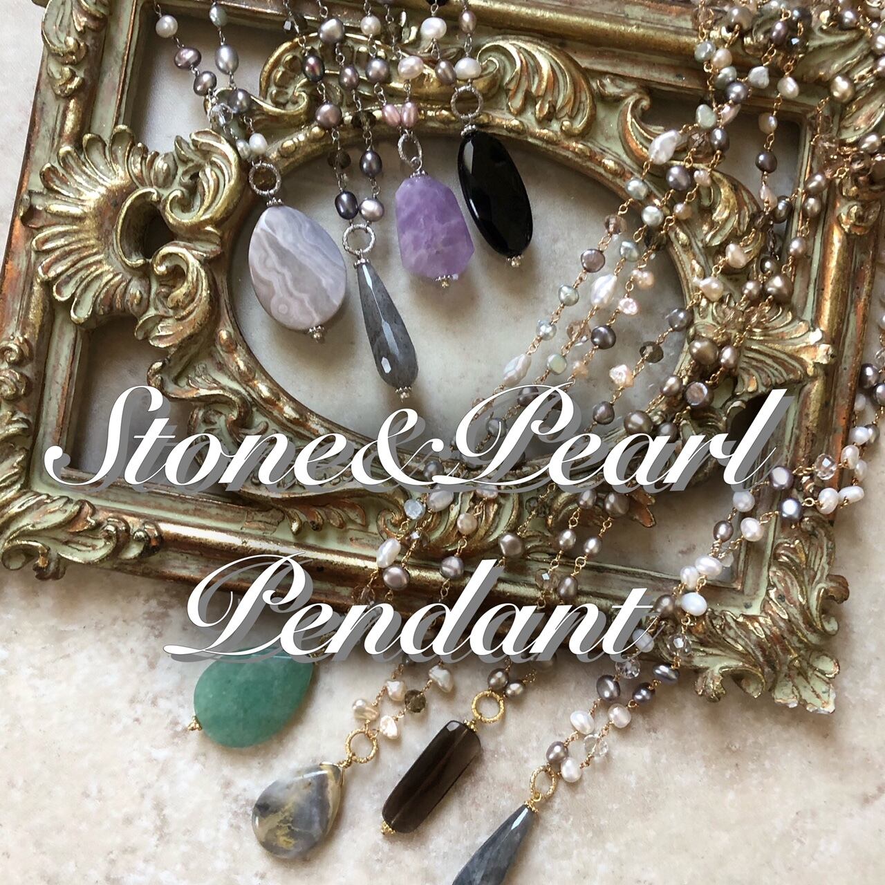 トップの天然石との色合わせが美しい淡水パールとカット入りガラスを