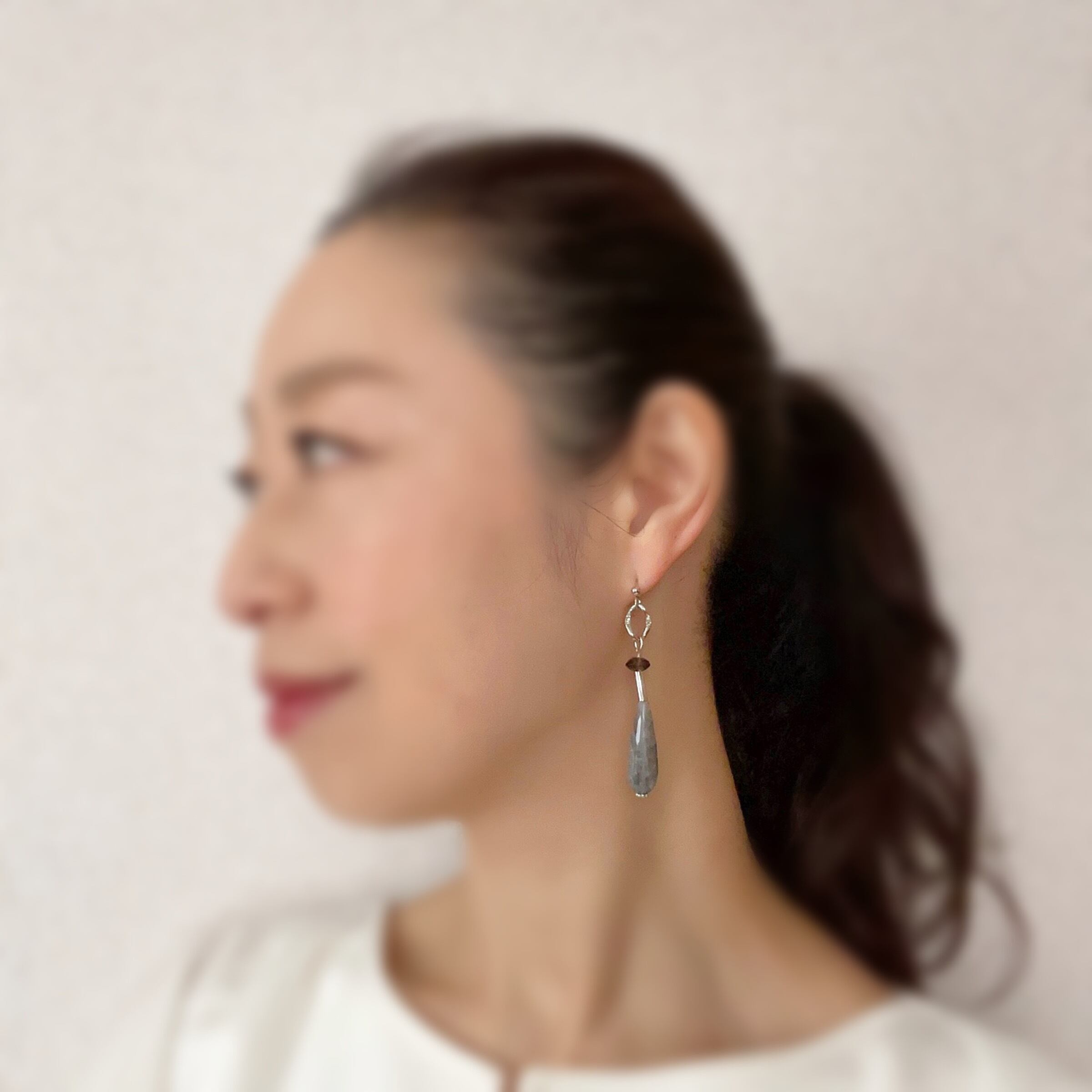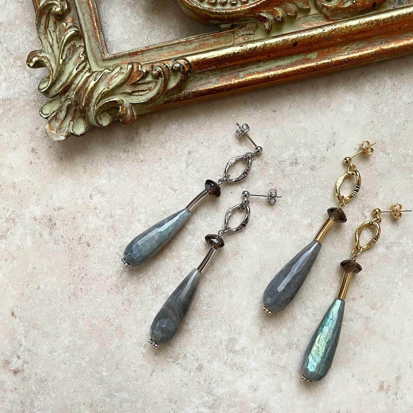 ラブラドライト・ スモーキークォーツ・真鍮他にメッキ加工